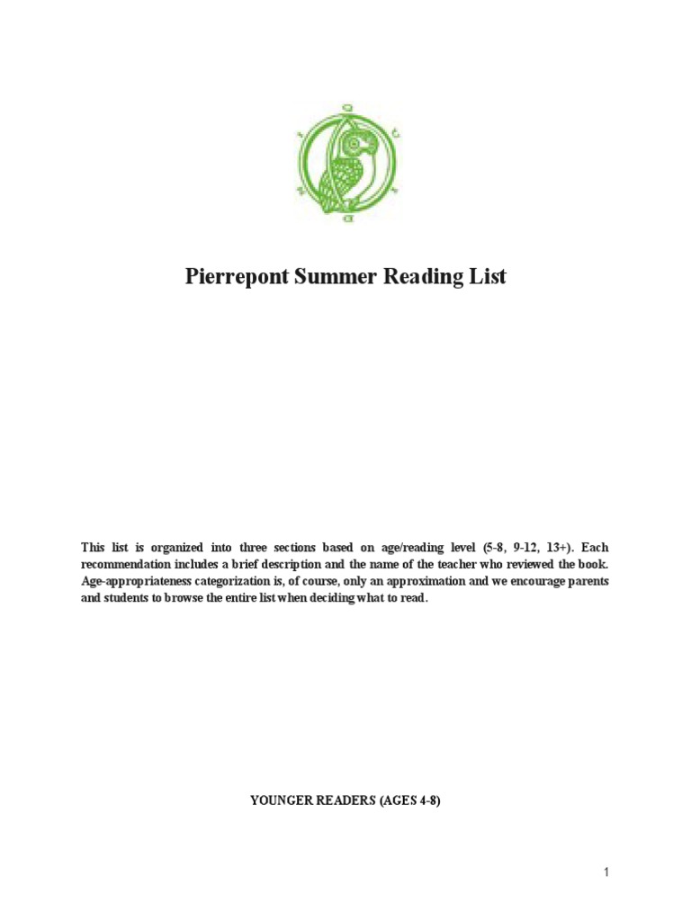 Summer Reading List Pdf